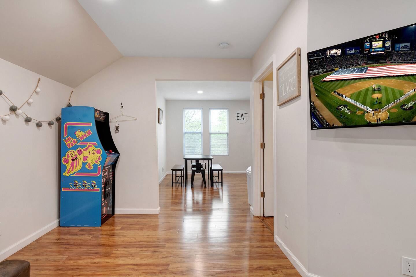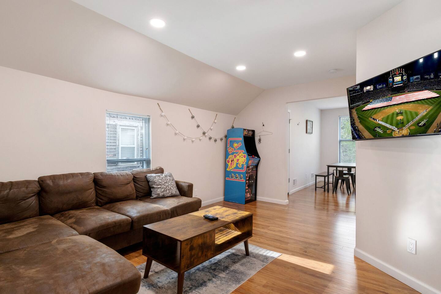 This is a spacious 7-bedroom house with 7 beds (3 queens and 4 fulls) and 2 full bathrooms. There are 2 beautiful kitchens with a stove, microwave and fridge. Kids will love the arcade games, and the apartment is within walking distance of Niagara Falls State Park, Seneca Casino and everything downtown. There are two parking spots in the driveway, and lots of street parking in front of the house.