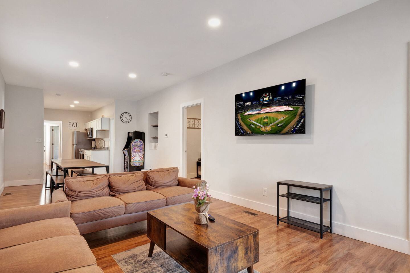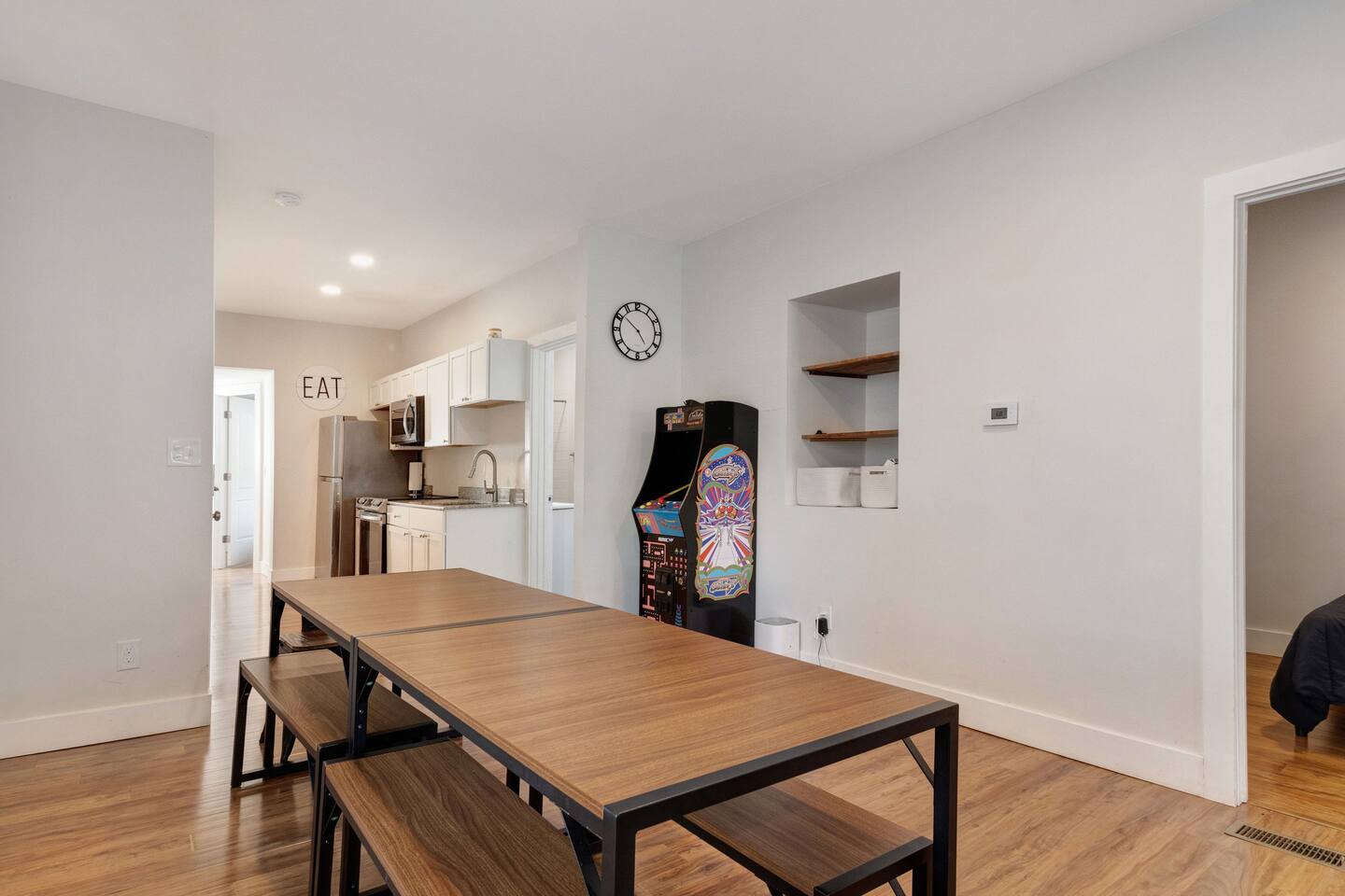 This is a spacious 4-bedroom apartment with 4 beds (2 queens and 2 fulls) and 1 bathroom. There is a beautiful kitchen with a stove, microwave and fridge. Kids will love the arcade games and the apartment is within walking distance of Niagara Falls State Park, Seneca Casino and everything downtown. There are two parking spots in the driveway, and lots of street parking in front of the house.